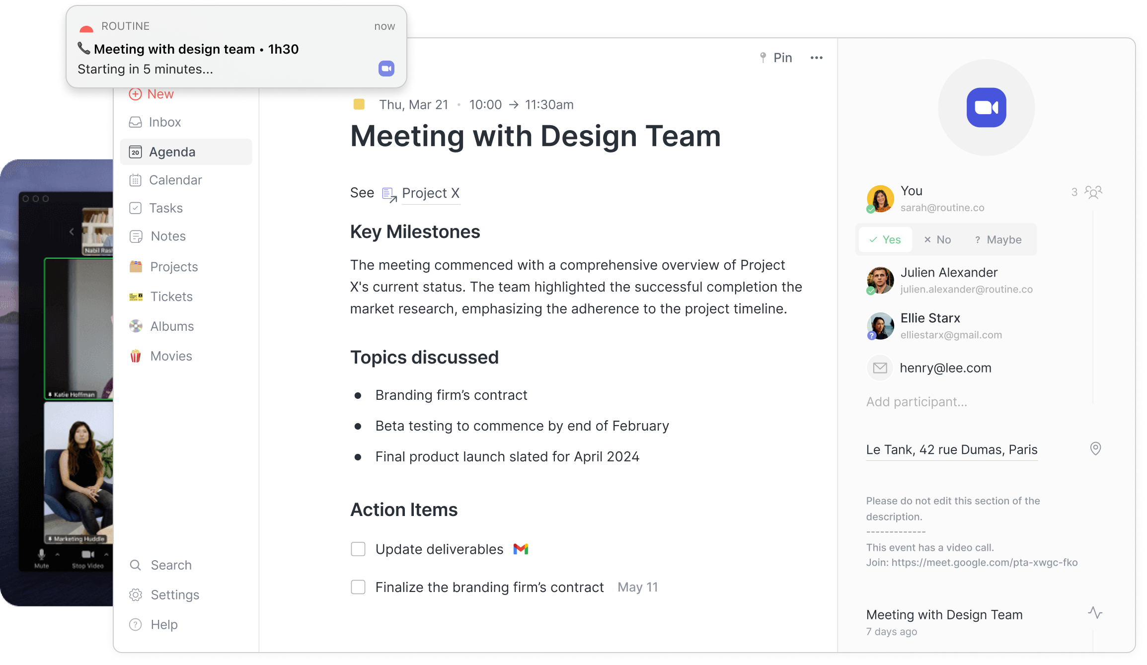 Routine geht noch weiter, indem es Wissen mit umsetzbaren Aufgaben, Meetings, Projekten, Zielen und Kontakten in einem leistungsstarken, flexiblen System integriert. Mit Routine wird Ihr Wissen nicht nur in Dokumenten gespeichert, sondern beeinflusst aktiv, wie Sie Ihre Arbeit planen, Ihre Meetings durchführen und Ihre Projekte vorantreiben.